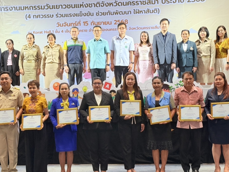 ได้เข้าร่วม พิธีรับมอบเกียรติบัตรหน่วยงานที่มีการขับเคลื่อนงานสภาเด็กและเยาวชนดีเด่น ในงานมหกรรมวันเยาวชนแห่งชาติจังหวัดนครราชสีมา ประจำปี 2568