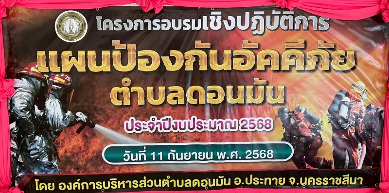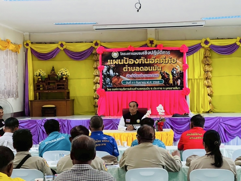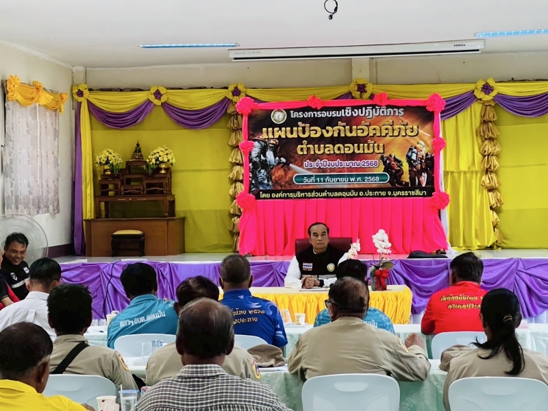 นายอภินันท์ มโนรมย์ นายก อบต.ดอนมัน ให้เกียรติเป็นประธานเปิด โครงการอบรมเชิงปฏิบัติการแผนป้องกันอัคคีภัยตำบลดอนมัน ประจำปี 2568  ณ องค์การบริหารส่วนตำบลดอนมัน