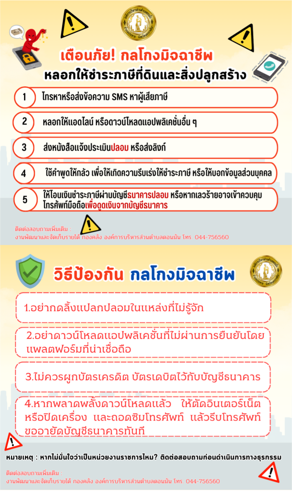 เตือนภัย!! กลโกงมิจฉาชีพ หลอกให้ชำระภาษีที่ดินและสิ่งปลูกสร้าง |