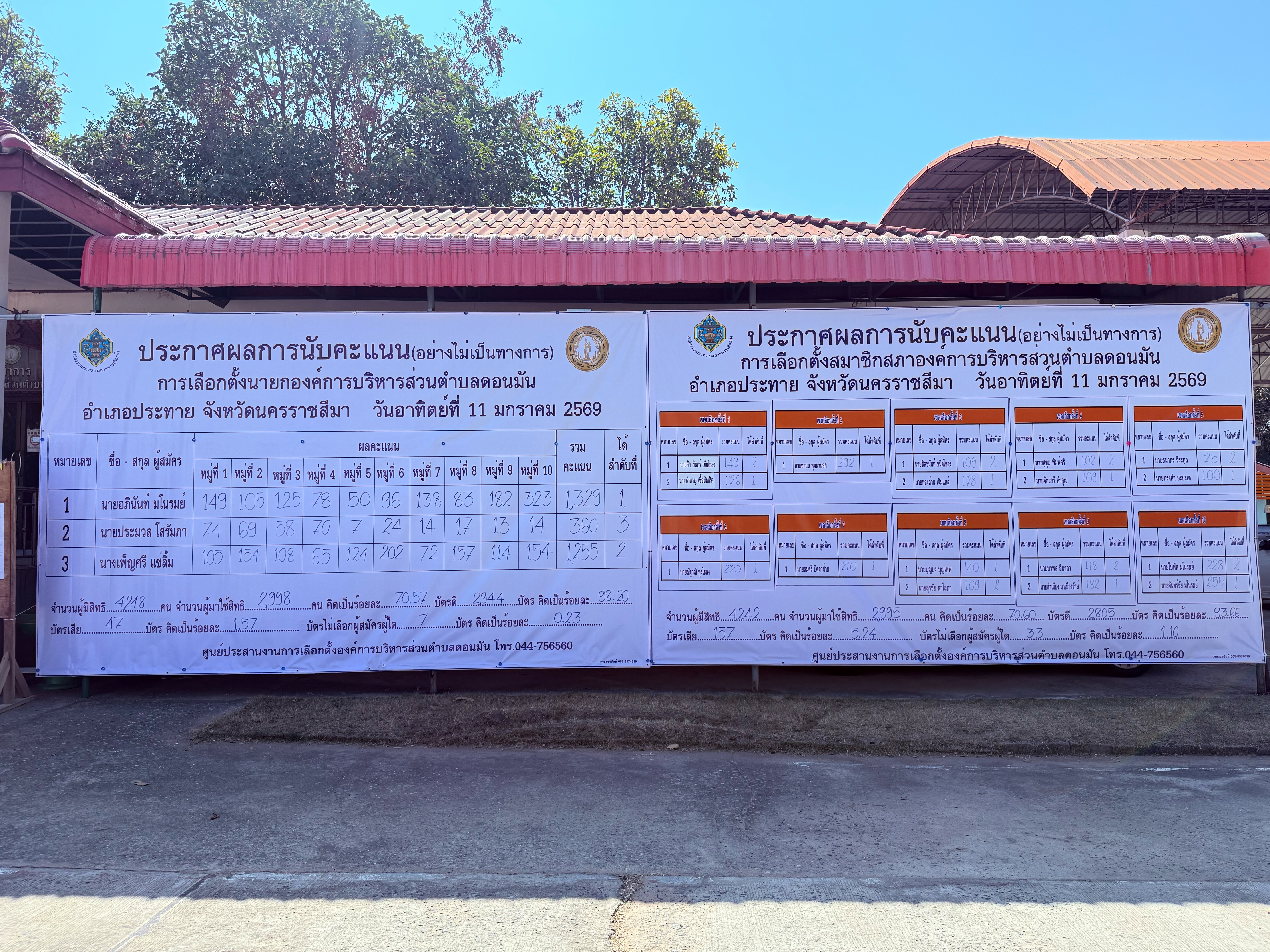 ประกาศผลเลือกตั้งสมาชิกสภาองค์การบริหารส่วนตำบลดอนมันและนายกองค์การบริหารส่วนตำบลดอนมันอย่างไม่เป็นทางการ