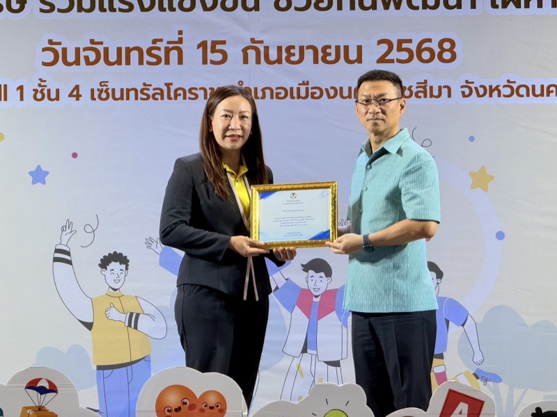 ได้เข้าร่วม พิธีรับมอบเกียรติบัตรหน่วยงานที่มีการขับเคลื่อนงานสภาเด็กและเยาวชนดีเด่น ในงานมหกรรมวันเยาวชนแห่งชาติจังหวัดนครราชสีมา ประจำปี 2568