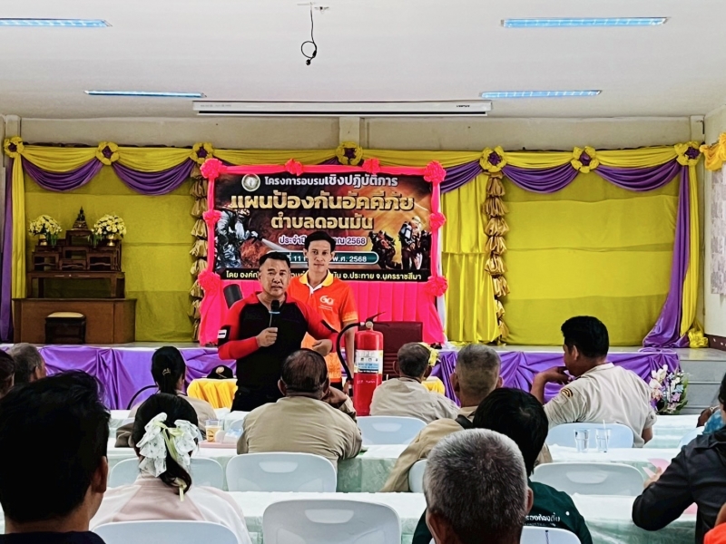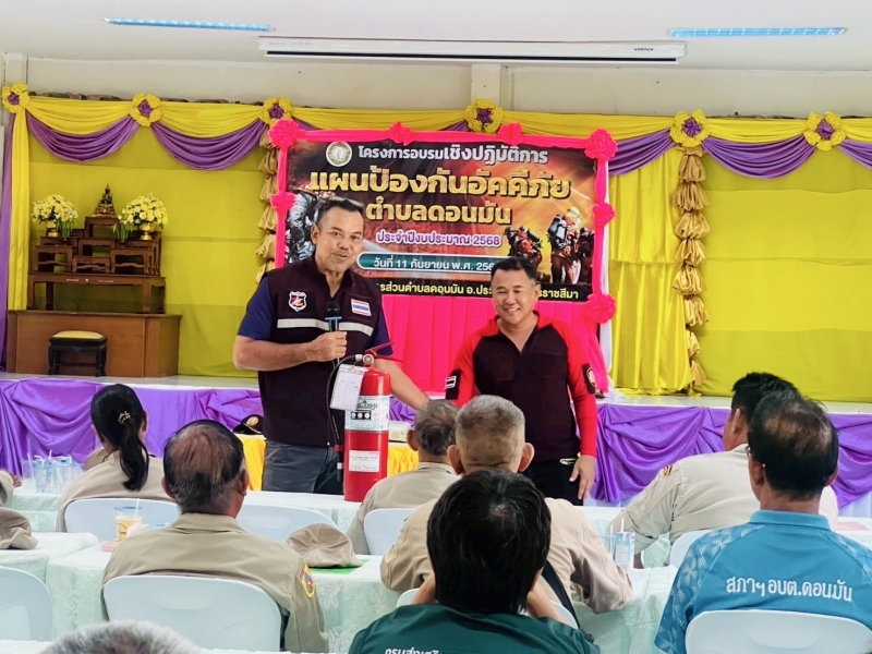 นายอภินันท์ มโนรมย์ นายก อบต.ดอนมัน ให้เกียรติเป็นประธานเปิด โครงการอบรมเชิงปฏิบัติการแผนป้องกันอัคคีภัยตำบลดอนมัน ประจำปี 2568  ณ องค์การบริหารส่วนตำบลดอนมัน