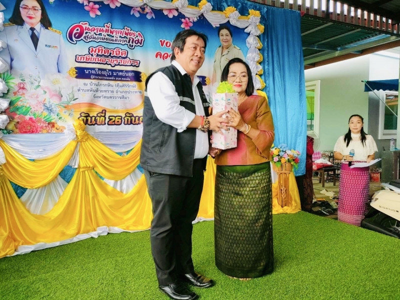 ได้ร่วมเป็นเกียรติในงานแสดงมุทิตาจิตแด่นางเรืองอุไร มาตย์นอก ผู้อำนวยการกองคลัง เนื่องในโอกาสเกษียณอายุราชการ ณ บ้านโกรกหิน ตำบลหันห้วยทราย อำเภอประทาย จังหวัดนครราชสีมา